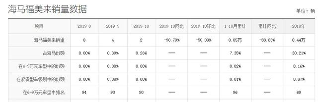 时间去到2017年4月,福美来单月销量跌到970辆,之后越来越少。2019年10月,某汽车销量网站上显示福美来的单月销量数字:2。