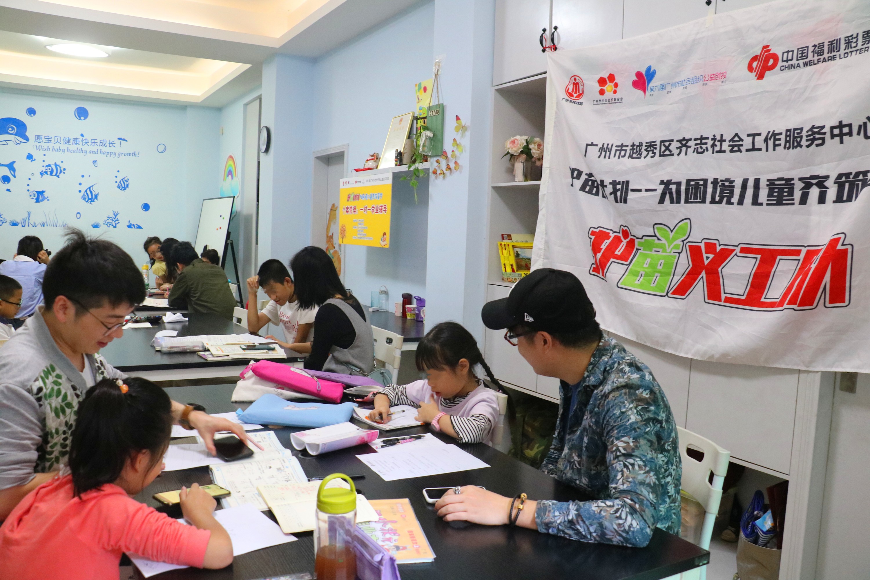 2019年11月24日上午,第六届广州市社会组织公益创投活动“护苗计划-为困境儿童齐筑童梦”个案管理一对一学业辅导在越秀区花樽巷1号悦思学堂开展。活动由广州市越秀区齐志社会工作服务中心发起,获得广州市民政局资助,由广州市社会组织联合会、越秀区民政局、共青团越秀区委员会指导,中国福利彩票支持。本次活动旨在为学习困境儿童开展学业辅导,提高孩子的学习能力和成绩,在唯品会的支持下,将在未来的一年持续为越秀区困境儿童提供学业辅导服务。