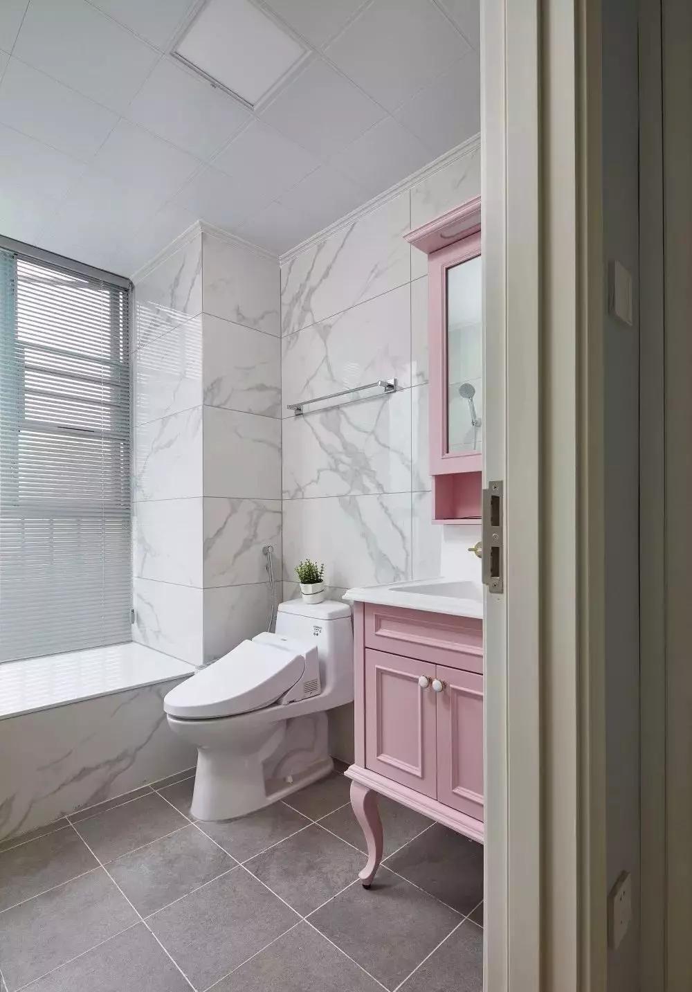 大理石纹与粉色柜体的结合,一柔一刚,表述的情感忽然变得丰富起来, 刚毅中透露着柔韧,坚挺中又有了袅娜。