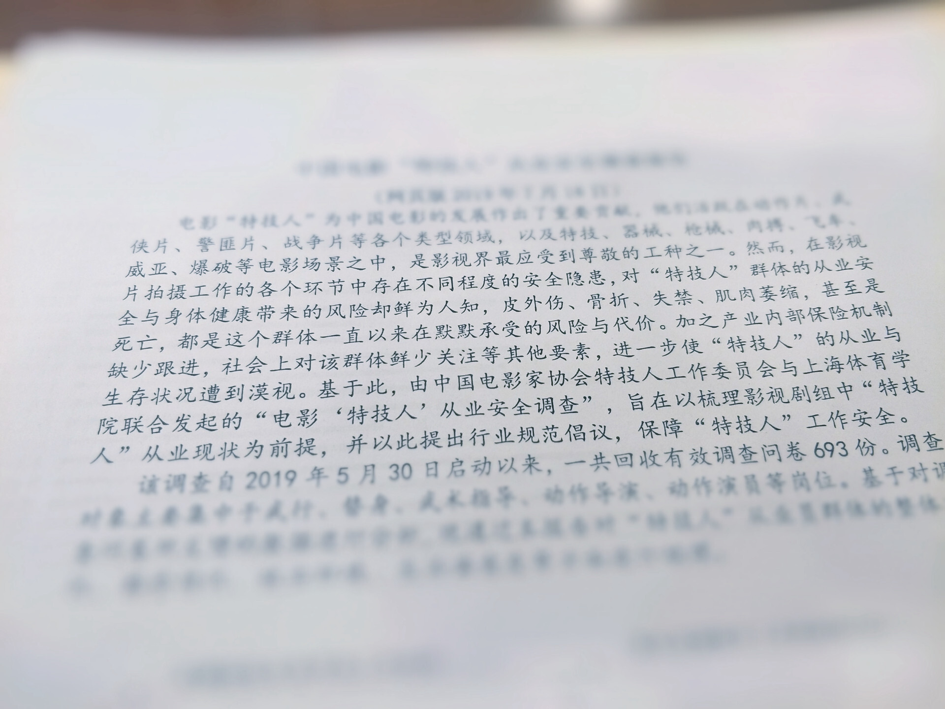 中国电影家协会特技人工作委员会2019年度工作会议于2019年11月在北京福建大厦召开。中国文联电影艺术中心副主任宋智勤,中国电影家协会特技人工作委员会秘书长何钧,上海体育学院武术表演团队负责人王三博士,在京知名动作导演韩冠华、李宝亮、刘伟超,上海影视制作行业协会副会长江传荣,上海发梦灵影视文化创意产业园执行董事徐杰导演,上海优睿传媒董事长于文浩,特技人工作委员会副秘书长孙腾飞、王翊晨等人参加会议。会议由中国电影家协会特技人工作委员会秘书长郑阳主持。