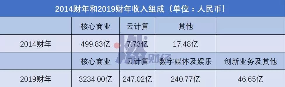 2014年赴美IPO时,阿里的招股书上还只有三项业务收入——核心商业、云计算以及其他(平台通过提供给市场参与者的其他服务,包括为中小企业贷款业务提供的小额信贷服务产生收入)。