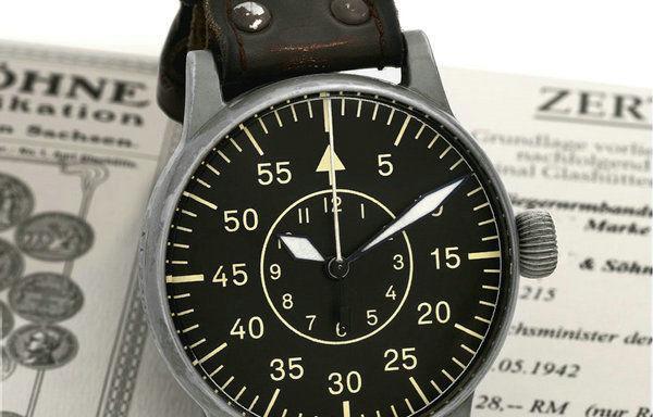 实际上,B-Uhr观测表是战争阴谋下的产物。自从德国纳粹空军建成时,就已经开始着手为战机配备可靠的计时工具。1935年,第一个时计草案指定像林白手表那样的时角指示,但后来废除了,制定了空军观测标(B-Uhr)时计草案。1940年左右,德国政府委托了朗格、万国、朗坤、Stowa、Wempe五家专业制表企业进行规模化生产。格拉苏蒂地区加强了以LANGE为主的钟表与弹药引信制造企业。