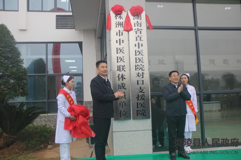 随后 , 黄诗燕、蔡宏坤、徐伟辉、文专文共同为省直中医医院对口支援医院、市中医医联体成员单位、中共炎陵县中医医院委员会、炎陵县中医医院揭牌。