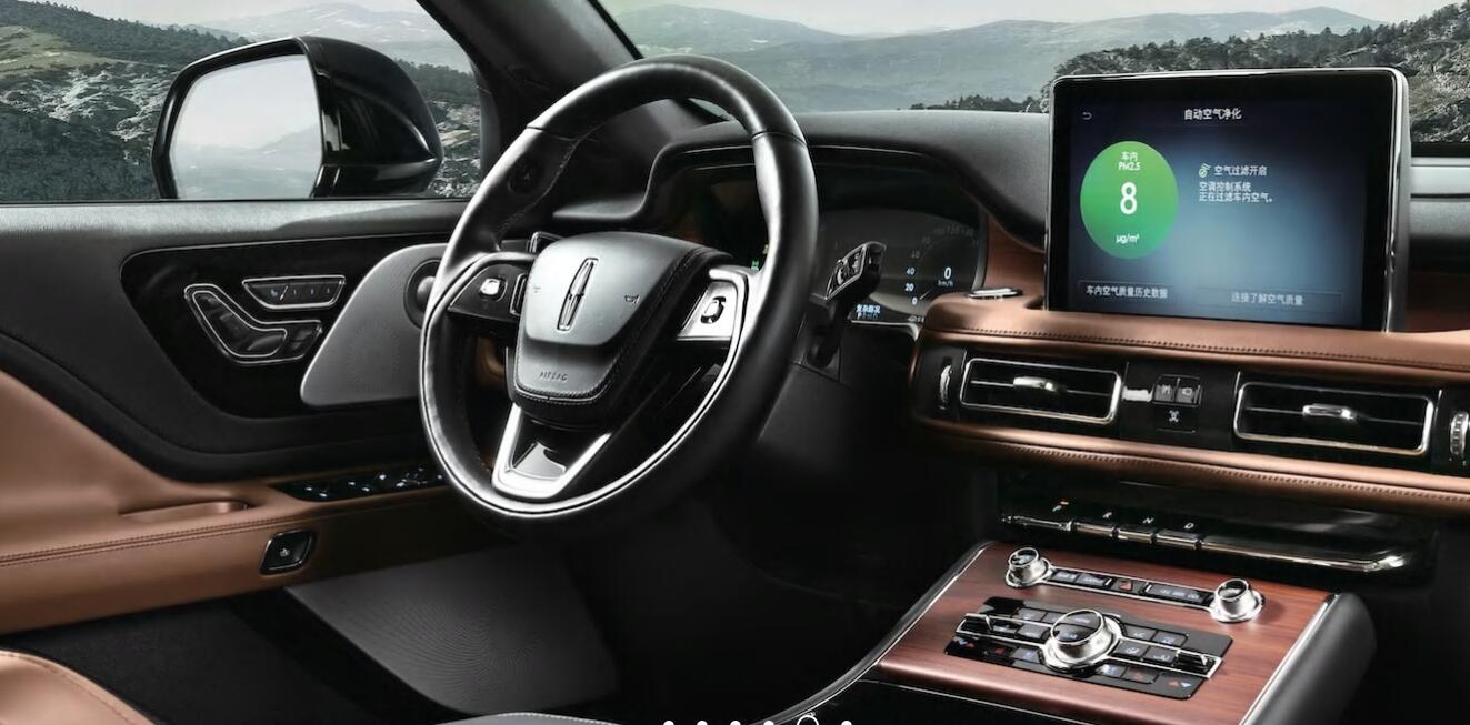 内饰设计上,全新林肯飞行家采取了简约大气的设计思路,以潜心雕琢的座舱内饰为车主打造一个低调奢华的私人空间。为了与整车大量出现的贯穿设计相呼应,林肯飞行家的T型中控台也以皮革和木纹饰板加以分割,突出干净整洁的各大功能区域。