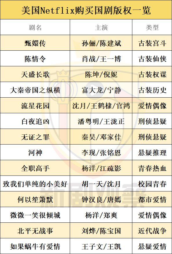 作为美国最大的流媒体平台,Netflix在购买海外版权方面从不含糊,尤其是在国产剧崛起之后,其先后订购了《甄嬛传》、《天盛长歌》、《白夜追凶》、《无证之罪》等多部在中国脍炙人口的作品。