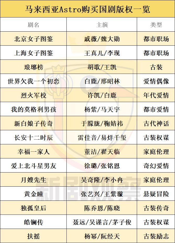 从引进到输出,这是国产剧散发光彩、获得海外认可的重要体现。新剧观察(ID:xinjuguancha)整理了如下资料(不完全统计),分别分析各海外平台的购剧数量以及特点。