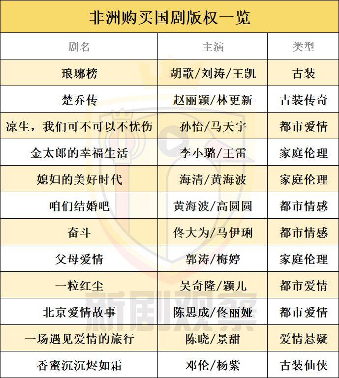 从早期非洲引入的中国国产剧版权来看,家庭伦理剧为重,其中包括《父母爱情》、《金太郎的幸福生活》、《咱们结婚吧》,以及《北京爱情故事》、《奋斗》等现实题材的生活剧。这些也非常符合非洲民众的审美特色,说到底,这也是人类情感的共同性所导致的。