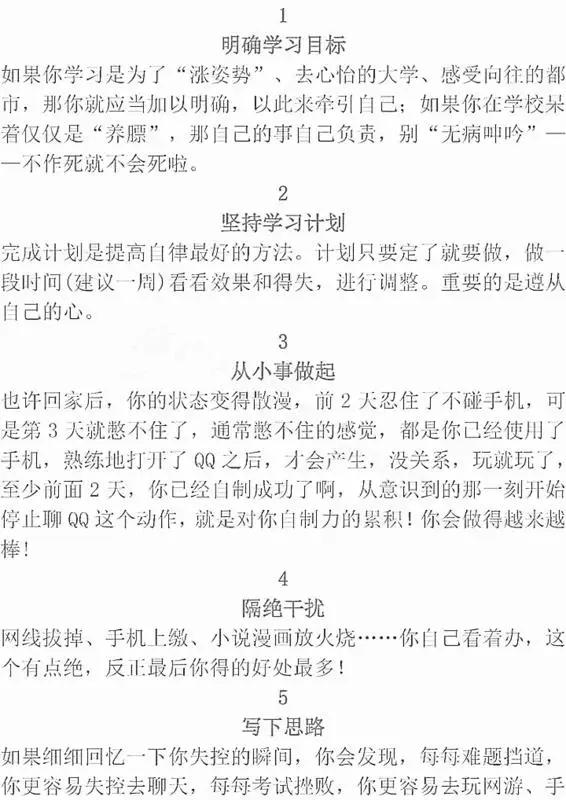 自律的人,永远分得清楚主次,拎得清什么是学习,什么是玩乐。中考在没有自制力的人那里,是压力;在有自制力的人那里,是动力。这就是本质的区别。那么,初中生如何提高自制力呢?