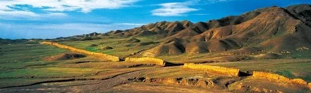 山麓荒漠草原土层瘠薄,多为粗骨淡灰钙土、砾石新积土。植被的种类也比较贫乏,草群低矮,覆盖度低,外貌灰绿,退化严重。图为贺兰山三关口长城一带的景色。