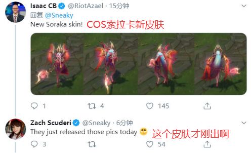 大家对于Sneaky的COS已经习以为常,在Sneaky推特下方,很多网友评论让其今年COS索拉卡的新皮肤,并贴出索卡拉新皮肤的样子,意思是让Sneaky照这样样子Cosplay。