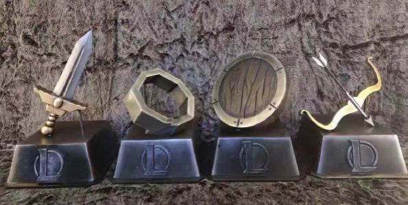 SOLO赛分为射手组、法师组、刺客组、战士组,奖杯也是与分组主题有关,射手组奖杯是弓箭,战士组奖杯是盾牌,法师组奖杯是戒指,刺客组奖杯是长剑。