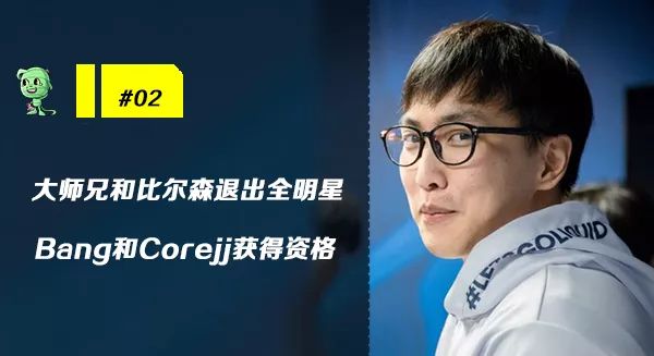 大师兄和比尔森让出全明星资格后,投票排名第三的Bang和第四的Corejj,代替大师兄和比尔森参加全明星。