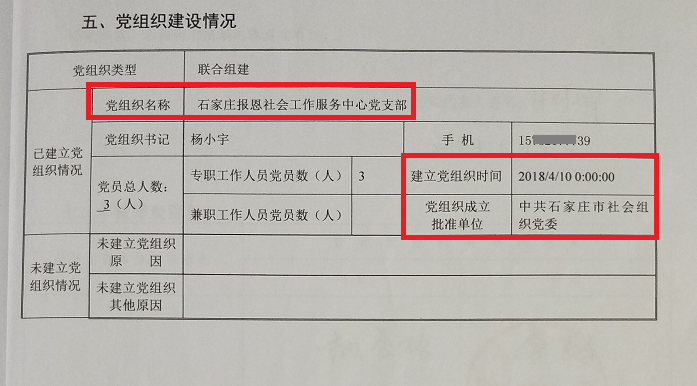 报恩社会工作服务中心应上级党组织要求并授权,用合法程序刻了党支部公章,并经过备案。也就是说,无论是成立“石家庄报恩社会工作服务中心党支部”,还是对党组织书记的认定,都经过了石家庄市民政局的严格审定。