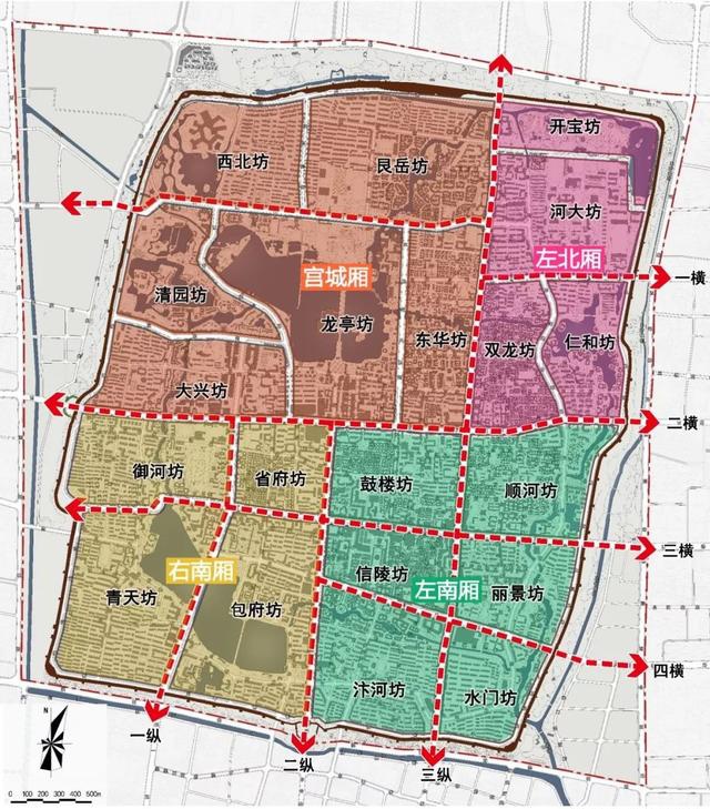 左北厢:开宝坊、河大坊、双龙坊,仁和坊