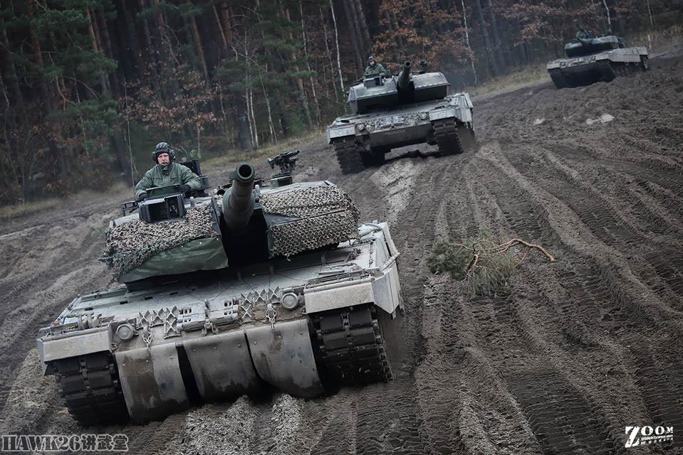近日,波兰装甲部队举行实战演习,该部队装备的是德国制造的豹2A5主战坦克。在来到波兰的豹2A5依旧保留了昔日德军的伪装风格,在炮塔前部披挂了伪装网。