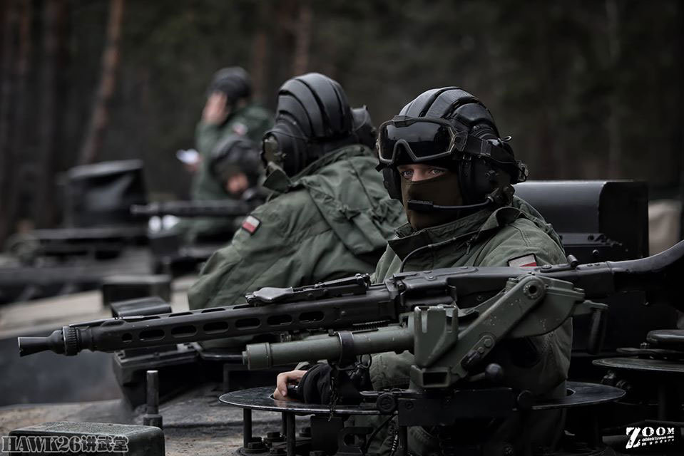波兰坦克兵戴着软质坦克帽,与西方国家的硬质坦克盔有着较大的区别。