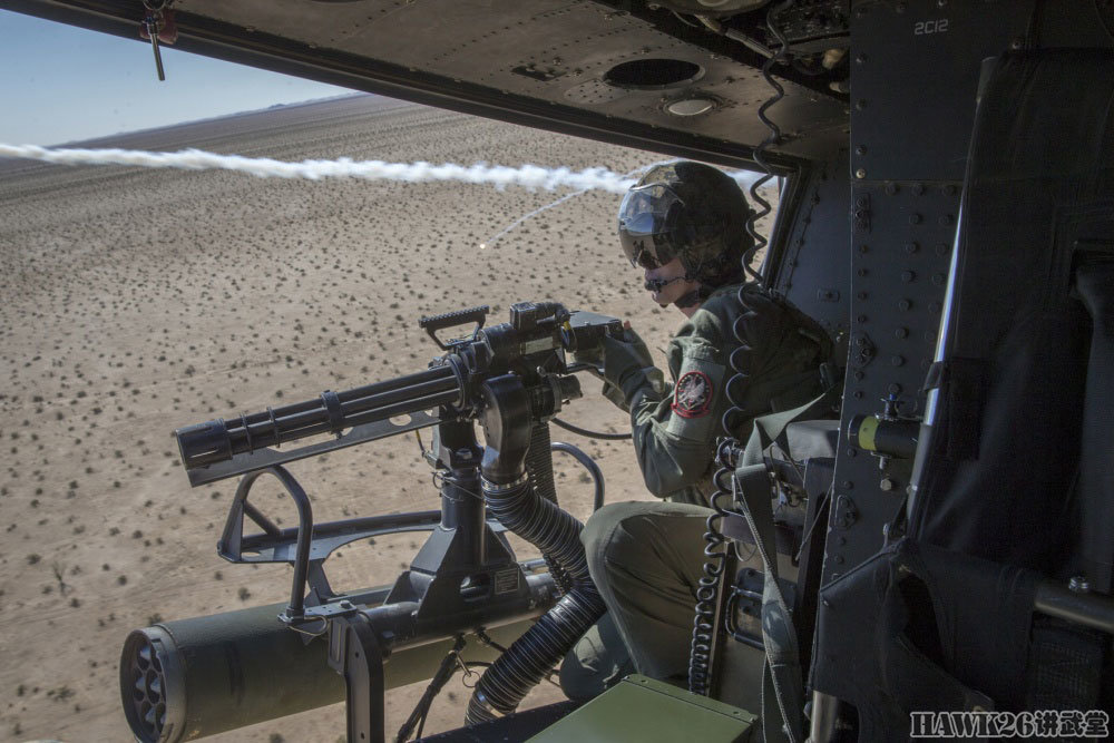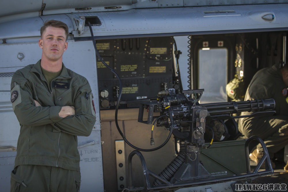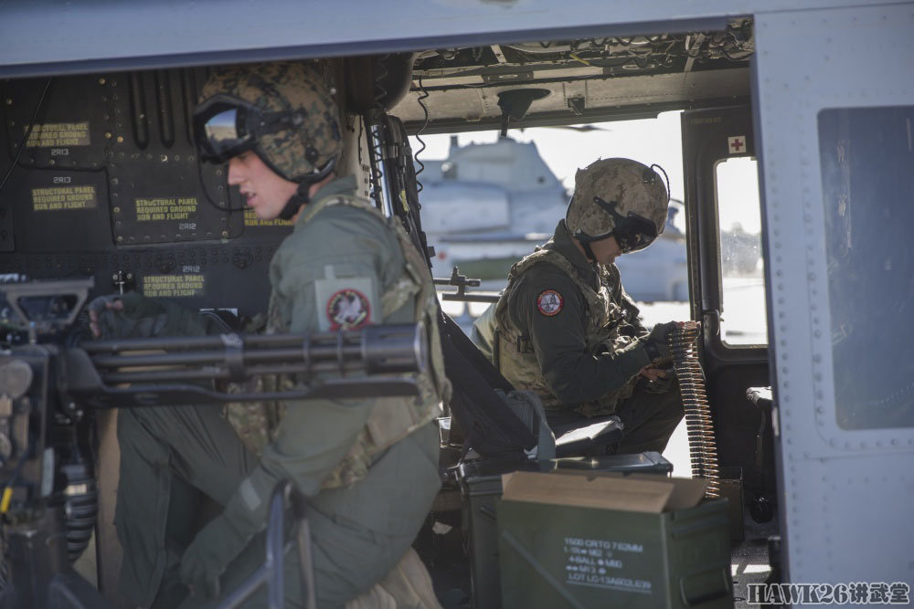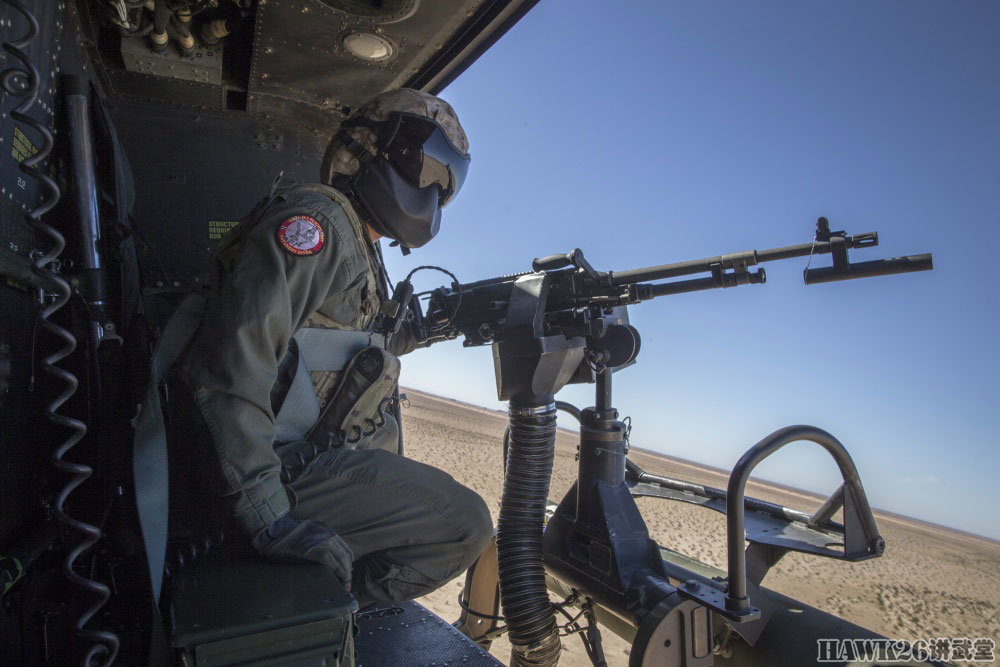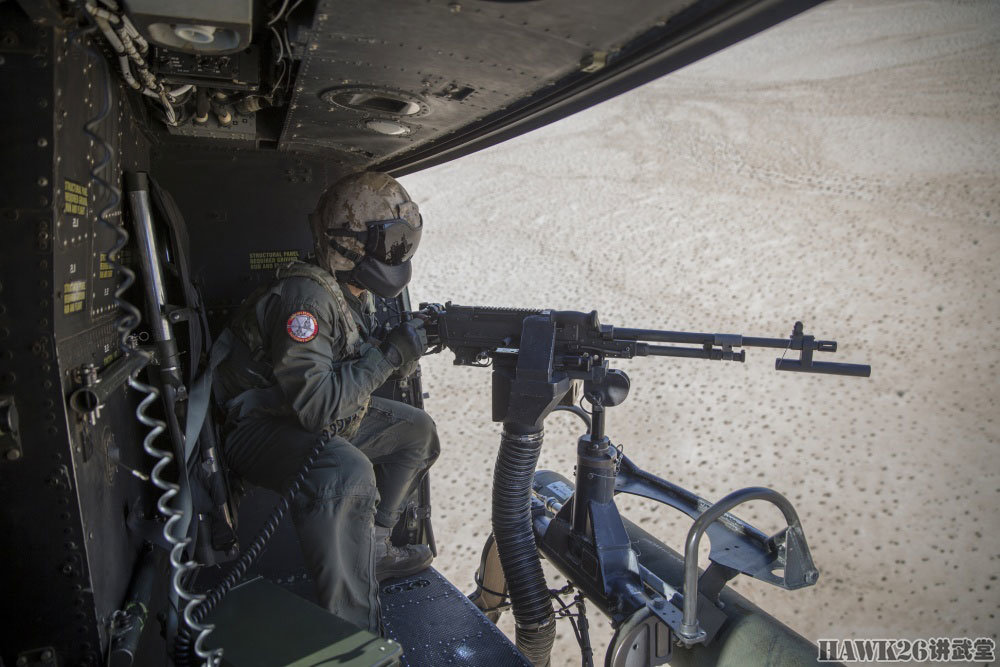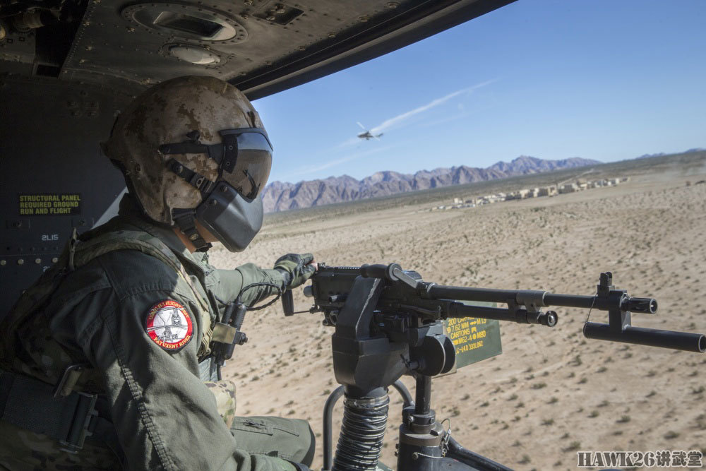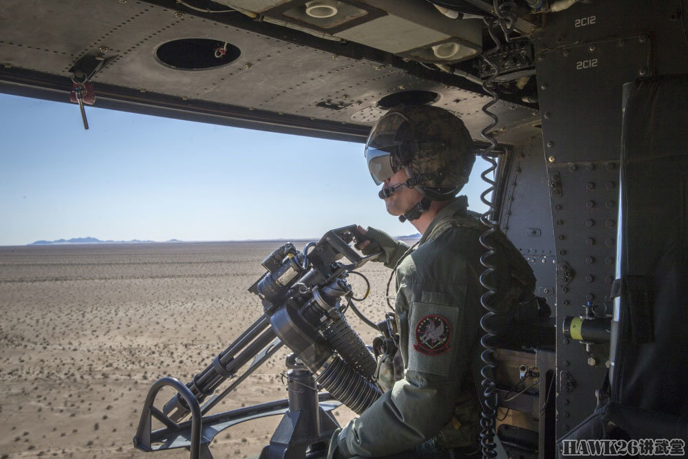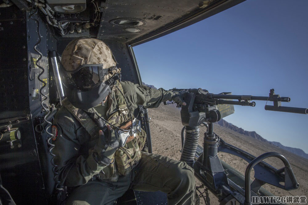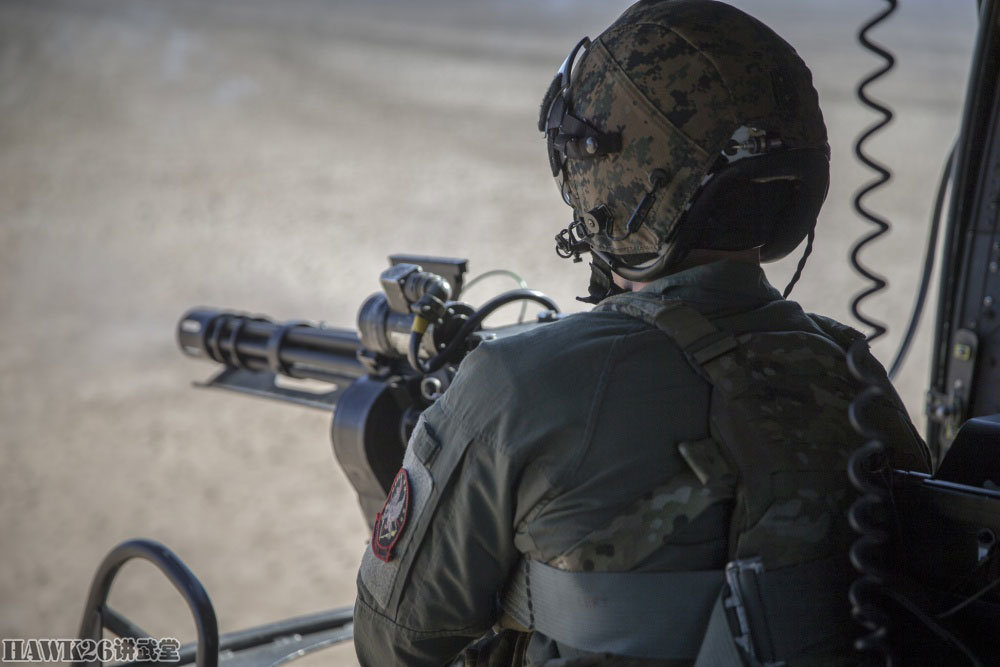 右侧舱门机枪手显得更加稳重,他操作的GAU-17/A加特林机枪就是海军/海军陆战队装备的M134,可以在短时间内给目标区域“撒上一层胡椒面”。
