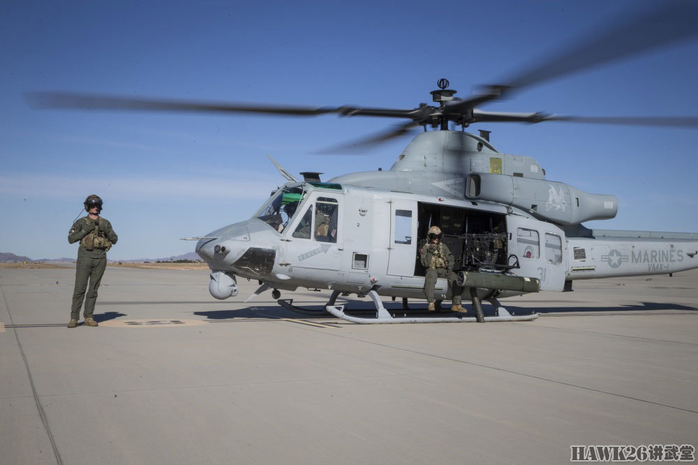 UH-1Y“毒液”等待起飞,可以看到这架直升机与最初的UH-1有了很大的区别,除了机身设计没有大的变化之外,从发动机到旋翼,再到航电设备,已经完全不同。难怪这种直升机已经有了自己的绰号,不再沿用“休伊”的名称。