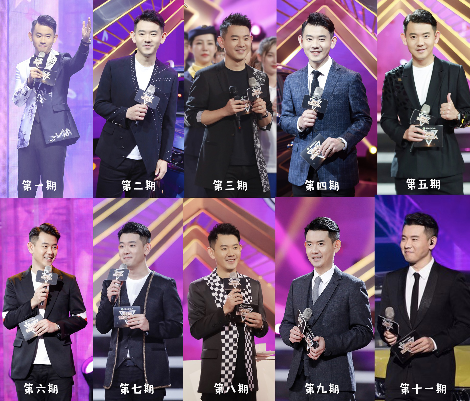 从《音浪合伙人》第一期节目开始,李响就以每期不同样的西服造型帅气亮相音浪舞台,款式多样到什么程度?我们用一张图来了解一下: