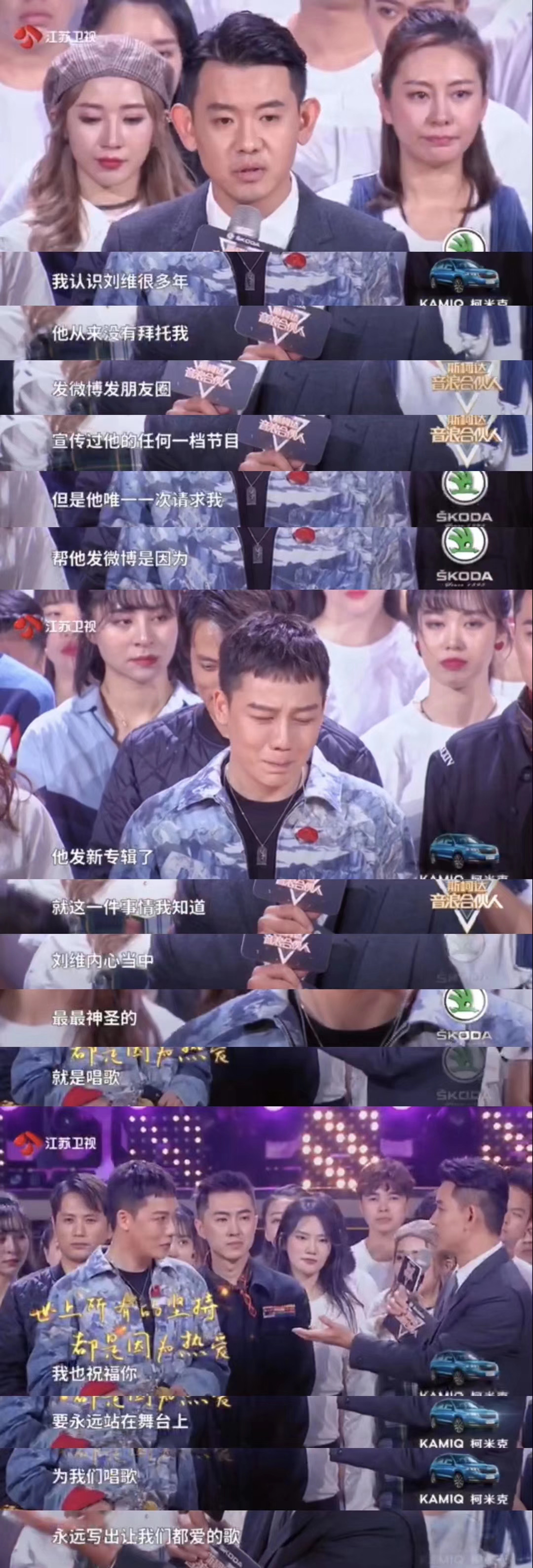 李响还向大家袒露他和刘维背后的故事:“我认识刘维很多年,他从来没有拜托过我发朋友圈帮他宣传他的任何一档节目。但是唯一一次请求我帮他发微博是因为,他要发新专辑了。”说完他还鼓励刘维要永远站在舞台上为大家唱歌和写歌。李响的真情诉说让刘维和台上台下的嘉宾观众顿时潸然泪下,节目气氛一下升至最高点。