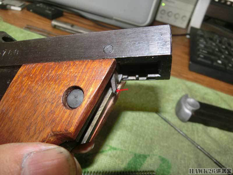 看来制造时过于匆忙,没有对其进行测试。因为要测试这个装置需要反复装上和卸下弹匣,过于耽误时间。尽管修锉只需要几分钟,即可让弹匣保险工作正常,但たかひろ决定保留这个小缺憾,毕竟这是一支做工粗糙的后期型手枪,需要留下这样的装配问题展现给后来者。