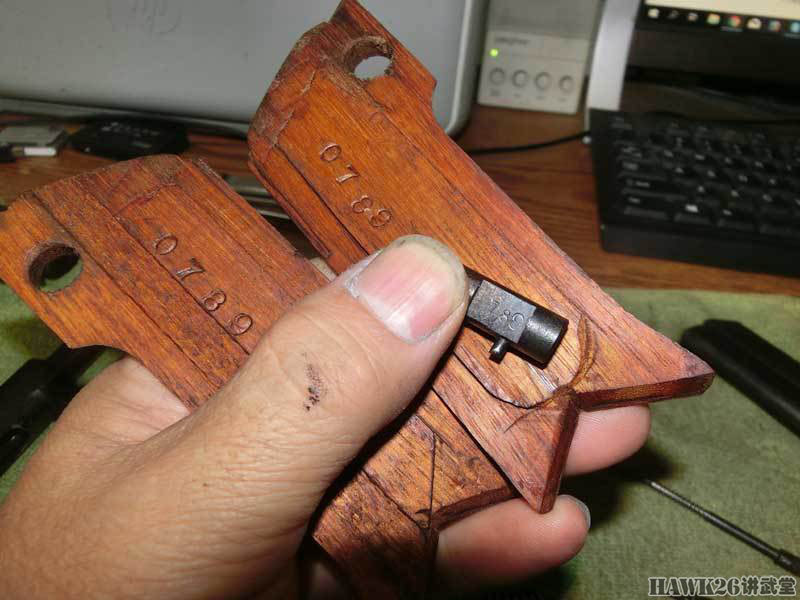 枪管和扳机组上的编号为789,就是该枪枪号70789的后三位,看来运气不错。