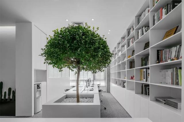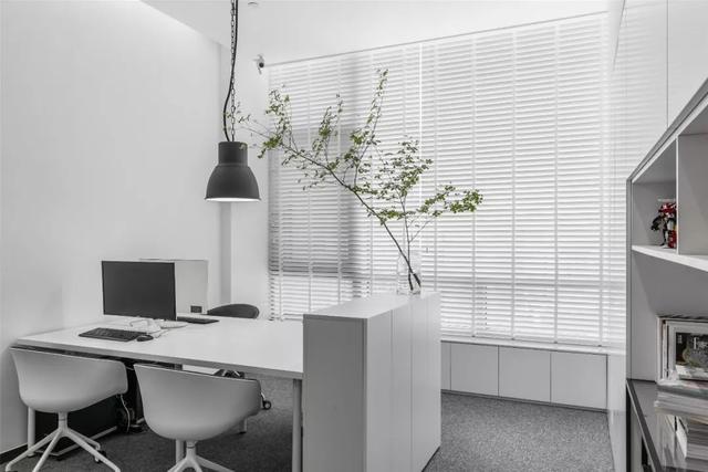 办公区域,用纯白色打造了一个开放式的极简空间,展现出高级品味的同时留下了更多遐想的余地。用绿植点亮办公场所的鲜活生命力,鲜绿的颜色让纯白的空间焕发活力。
