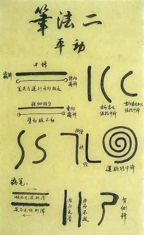 在摆动基础上保持中锋,并试着藏锋,使线条保持粗细均匀,先从直线开始,然后试着练习弧线。注意,保持线条的均匀平滑!
