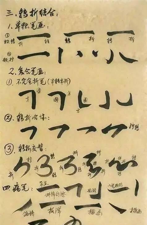 接下来是转折。转折分为很多种,包含藏锋、露锋、提按等笔法,综合运用。