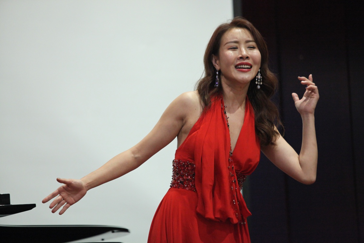 音乐会设置简朴,没有炫目的灯光,没有多余的装饰,小小的舞台上只有一架钢琴,郭先生的9位学生相继登台,纵情演绎近20首俄罗斯名曲、外国咏叹调和中国歌曲。男高音王牌演绎深情演绎了柴可夫斯基的“再次孤独”,郭先生说这是柴可夫斯基声乐大赛的必唱曲目,难度很大。罗西尼歌剧《塞维利亚理发师》中罗吉娜的咏叹调“我听到美妙歌声……”被女中音王宏尧演绎的演绎的风情万种,男高音马佳则声情并茂的演唱了谷建芬的《那就是我》,而女高音蔡楠、女高音李红梅、男高音李佳轩先后演绎了歌剧《蝴蝶夫人》乔乔桑的咏叹调“当晴朗的一天”、《炙热的心愿》以及歌剧《浮士德》浮士德的咏叹调“贞洁的小屋”。女高音吴碧霞则以《夜莺》技惊四座,精灵般的长相和夜莺般的嗓音满足了人们对这首歌曲的完美想象,博得满场掌声。王牌、马佳两位男高音合唱了歌剧《图兰朵》中那曲著名的咏叹调“今夜无人入睡”,两人相互较劲儿飙起的高音令人大呼过瘾。