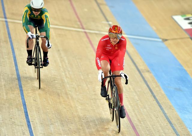 新华社照片,香港,2019年12月1日 (体育)(3)自行车——场地自行车世界杯香港站:女子凯林赛赛况 12月1日,中国选手钟天使(右)在女子凯林赛第一轮比赛中。 当日,2019-2020场地自行车世界杯香港站比赛在香港自行车馆继续进行。 新华社记者卢炳辉摄