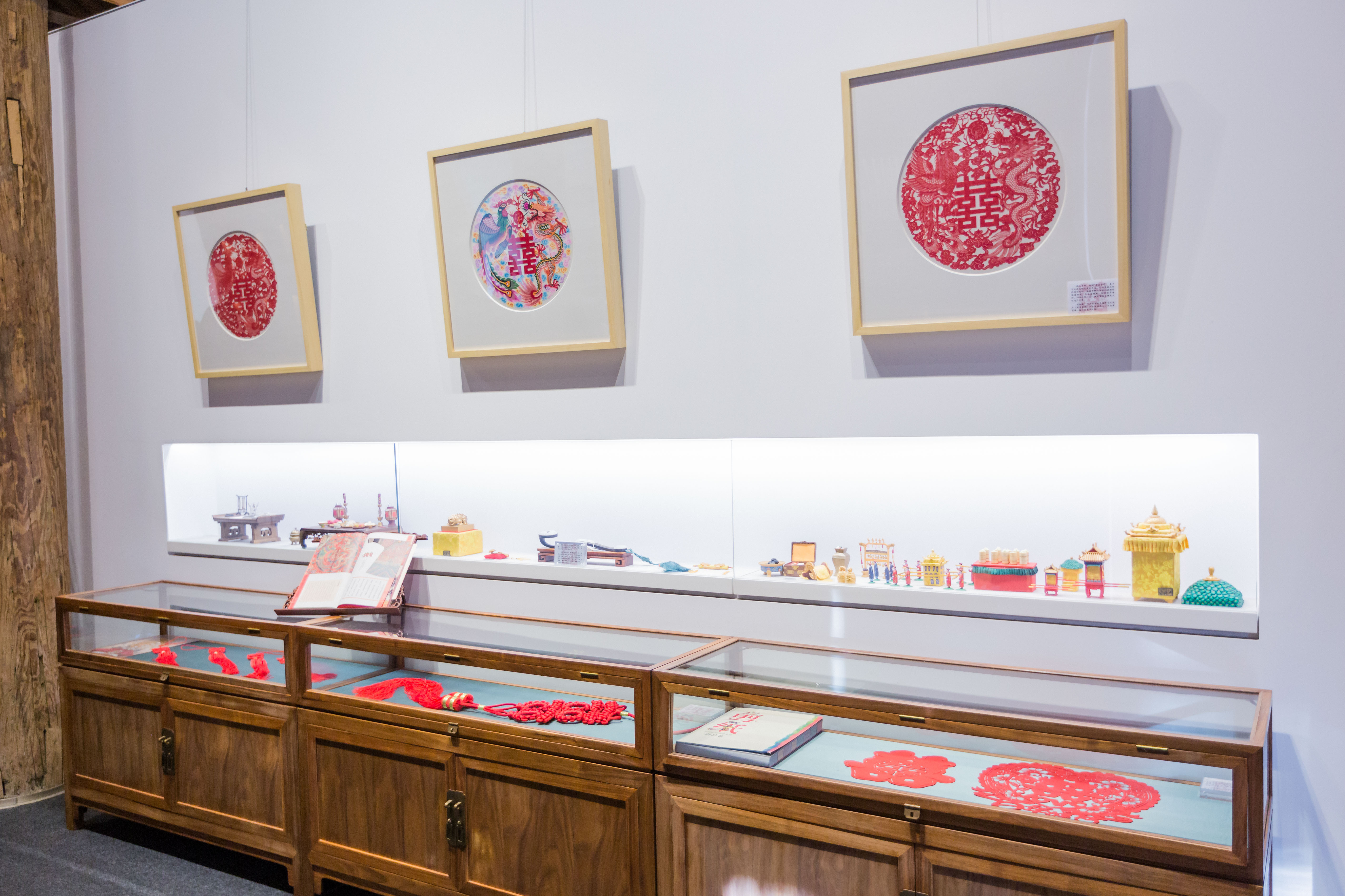 此外,现场还有宫囍题材蔚县剪纸、结绳、中国娃娃、大婚泥塑人偶、祥禾饽饽传统糕点等非遗技艺成果展示。