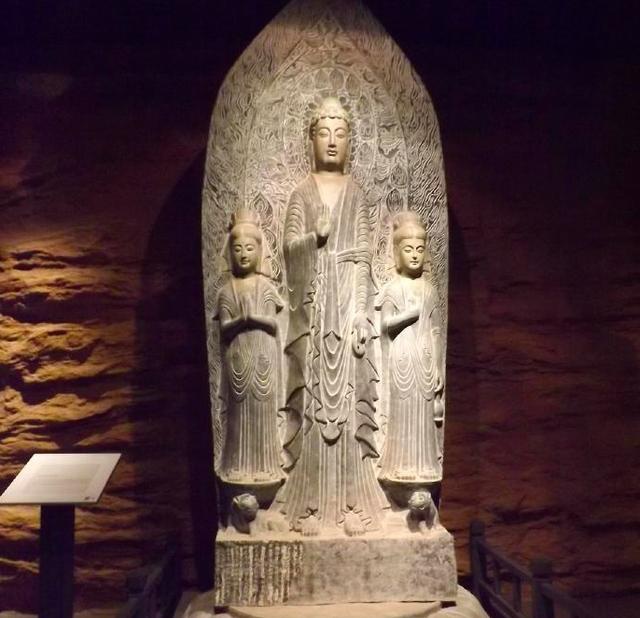 西明寺造像碑通高4.8米,宽1.65米,属单体石刻造像,背光呈莲瓣形,正面雕一佛二菩萨三尊立像,是北魏晚期石刻造像精品。2006年,西明寺造像碑作为南北朝时期石刻,被列入第六批全国重点文物保护单位名录。