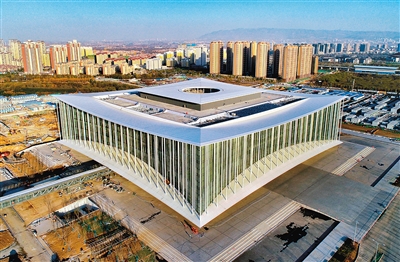 西安丝路国际会议中心这个“高大上”的项目,可服务国际高峰论坛、双边及多边会议等功能需求,主要用于3000人左右的大型会议和宴会;兼做高端精品展示,可提供展览面积45000平方米。填补了西安乃至西北地区缺乏相对专业及综合性大型会议中心场馆的市场空白。图为12月2日,无人机视角下的西安丝路国际会议中心。 西安报业全媒体首席记者 王健 摄