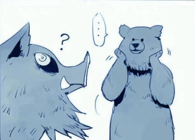 这时,伊之助发现了另一头熊,身形虽然很大,但是好像并无恶意,相反,他好像很想接近伊之助,想陪伊之助游戏。伊之助觉得很是奇怪,于是盯着它看了很久,不知觉间还感觉对方有点小可爱。