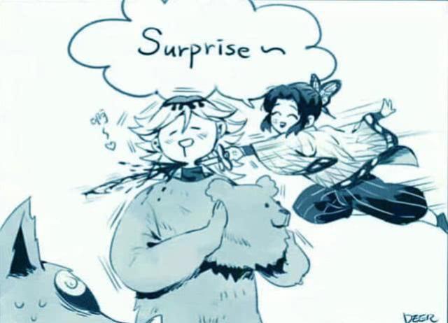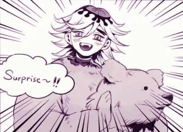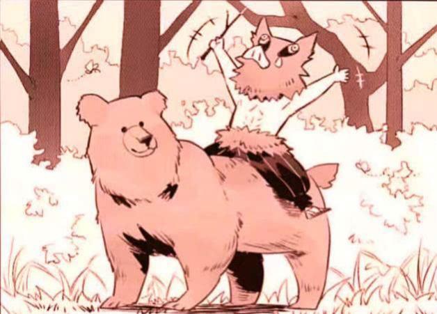 不过有漫迷通过绘画展示出了童磨的洗白经历:嘴平伊之助正骑着一头巨熊,十分快活,并且深处双手表示自己的是森林之王。