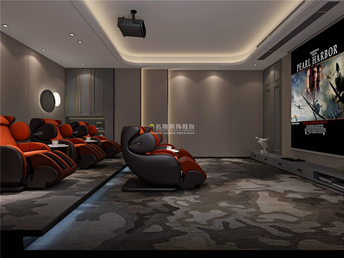 影音室现代简约的法式为主,浅灰色搭配梵蒂尼迪安蓝的墙面声学装饰,柔和温暖的灯光设计,让人感觉特别温馨,满足需求的大投影仪,足不出户享受影院的氛围,能够温暖舒服的享受这片刻的闲暇时光,放松身心。