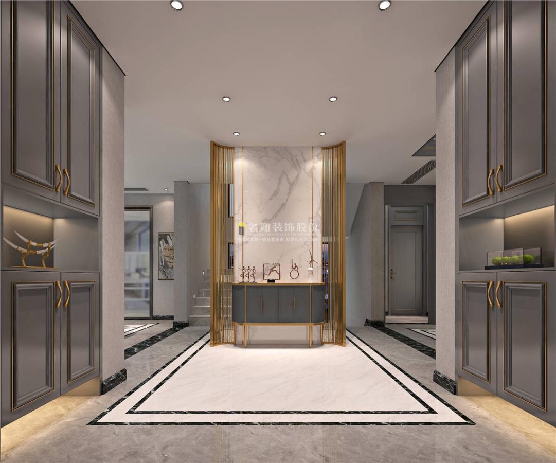要想入门第一眼就显得贵气,就选择法式玄关装修设计。洋气又现代的入户玄关,灰白主色调之间,不规则金属线条勾勒出静止却灵动感的画面。烟灰色的鞋柜与星点的小植被、通透的金属屏风与大理石融合打造一个艺术小空间,桌面上摆上几件原版的现代艺术家雕塑,给人带来舒适惊喜的入户视觉享受。