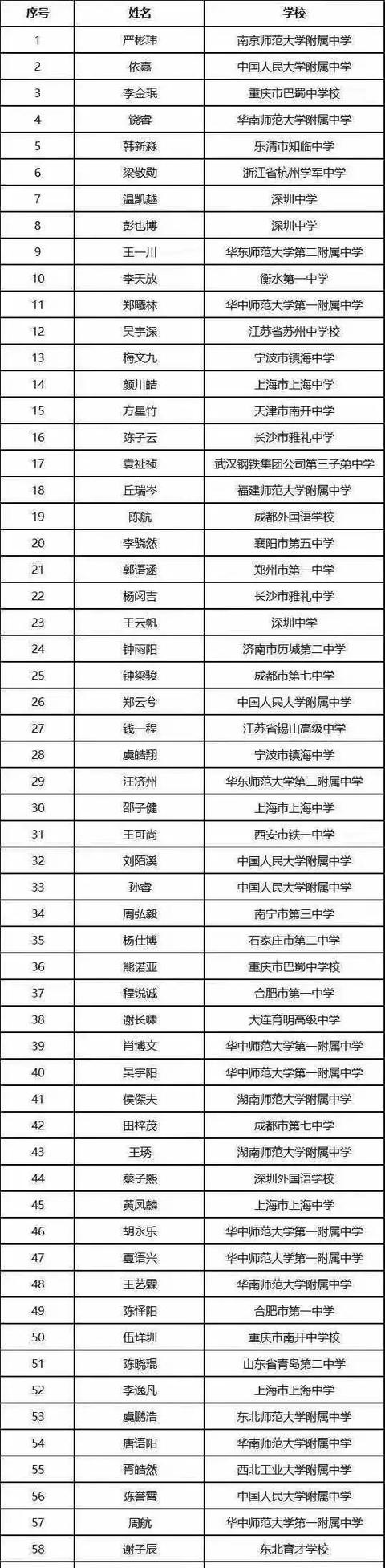 - 重庆巴蜀中学、长沙雅礼中学各有2人;