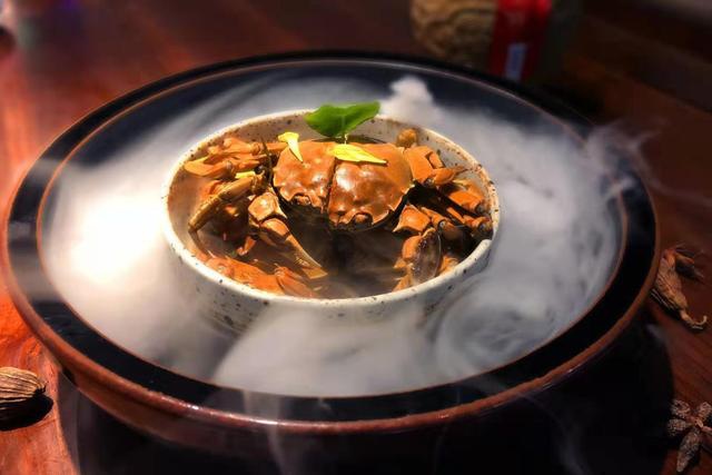 醉蟹,相传由在安徽作幕的绍兴师爷所创。当时,淮河两岸蟹多为患,当地百姓却不知食用,庄稼遭害,驱赶无方,十分惊恐。师爷便向州官提议,鼓励百姓捕捉,上交官府,他则备好许多大缸和食盐、黄酒,将蟹腌制起来,然后,到各地销售,绍兴俗称其为“淮蟹”。“醉蟹”是在此基础上改良而成,经选蟹、养蟹、制卤、浸泡、醉制等工序精制,清香肉活、味鲜吊舌。