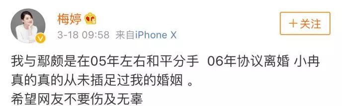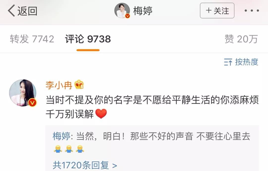 一直到第二天,梅婷站出来为李小冉澄清了,她清楚地说明了时间线, 证明李小冉没有当小三,拆散他的婚姻 ,还为李小冉祝福,真的是非常有礼貌。