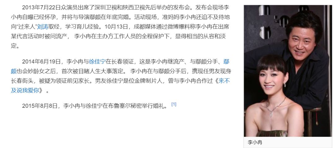 而本来以为两个人能够修成正果的时候,他们分手了,后来 鄢颇就结婚了,还有了孩子, 而女主角不是李小冉。
