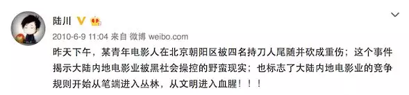 说真的,陆川这话说的很没有水平,口口声声是电影业,鄢颇被砍这件事真的和电影有关系么? 明明是和感情有关系啊,好事都是你们自己的天赋和努力,坏事都是这个行业坏了。