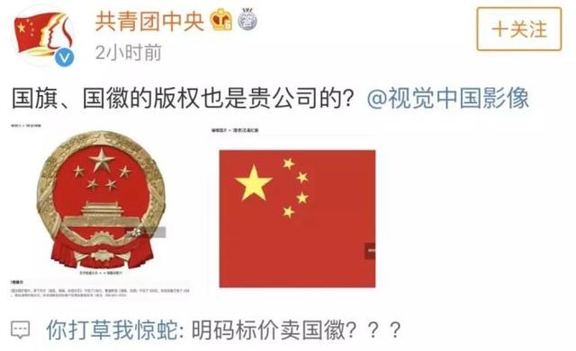 这则声明立刻引起公愤,随后视觉中国被发现网站上居然公开售卖国旗国徽的图片。