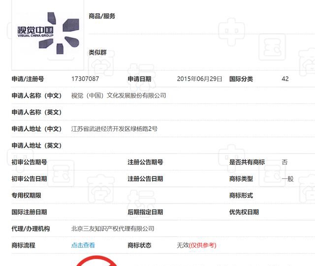 视觉中国这家公司的名字里出现了“中国”字样,容易让人们以为这是一家国企,但实际上这只是一家普通的企业,而这样的名字是不能注册商标。果然,通过商标局官网可以查到,视觉中国公司申请的几个商标都被驳回。视觉中国的这个logo根本就不是注册商标。