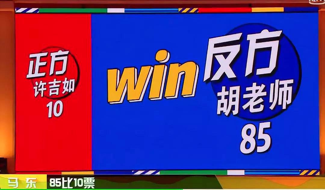 第一场,许吉如跟杨奇函辩论,她思维清晰,语言流利,四位导师全部把票投给了她。
