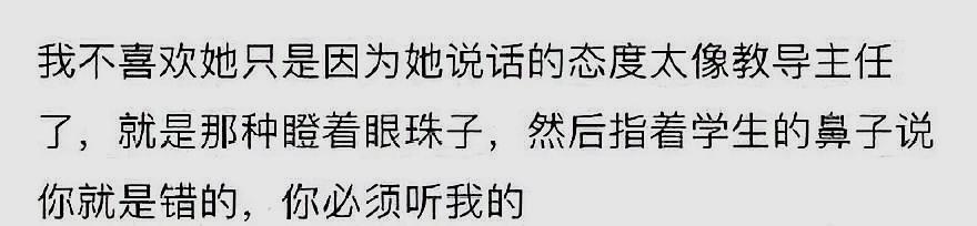 观众说她说话的态度,太像教导主任了,就差明明白白地说上那句: