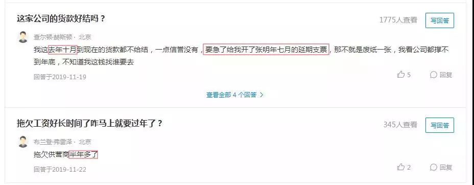 除了工资没有结算,很多供应商也表示货款尚未结清。