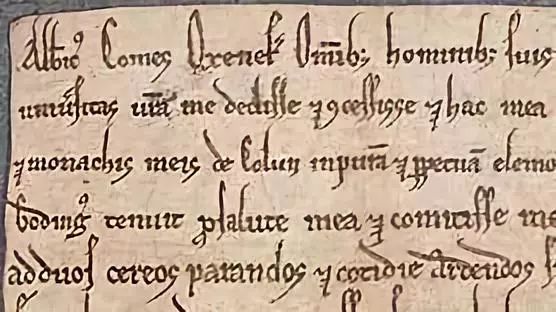 12 世纪的法院体书写,英国诺丁汉大学馆藏 Detail from Me 3 D 2, c.1175