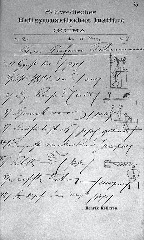 19 世纪初的处方文本,典型的秘书体。Prescription for Herr Professor Petermann, by Henrik Kellgren of the Schwedisches Heilgymnasticsches. MS 7869/25.